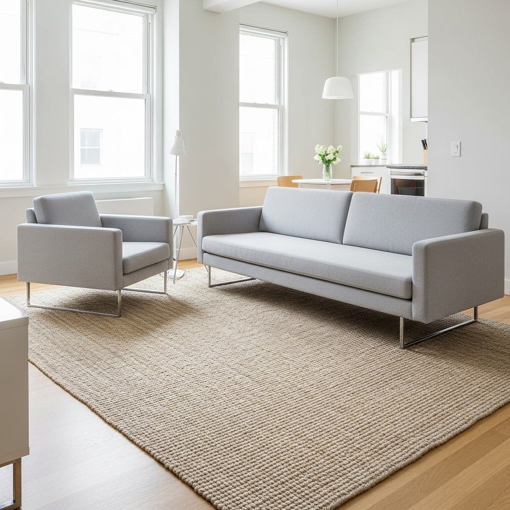 In an open-concept small apartment, rugs are excellent for subtly defining different functional areas. A large, low-pile rug in a natural fiber like jute or wool can anchor a living space, while a smaller one can delineate a dining nook. This creates distinct zones without needing physical barriers, maintaining an open flow.