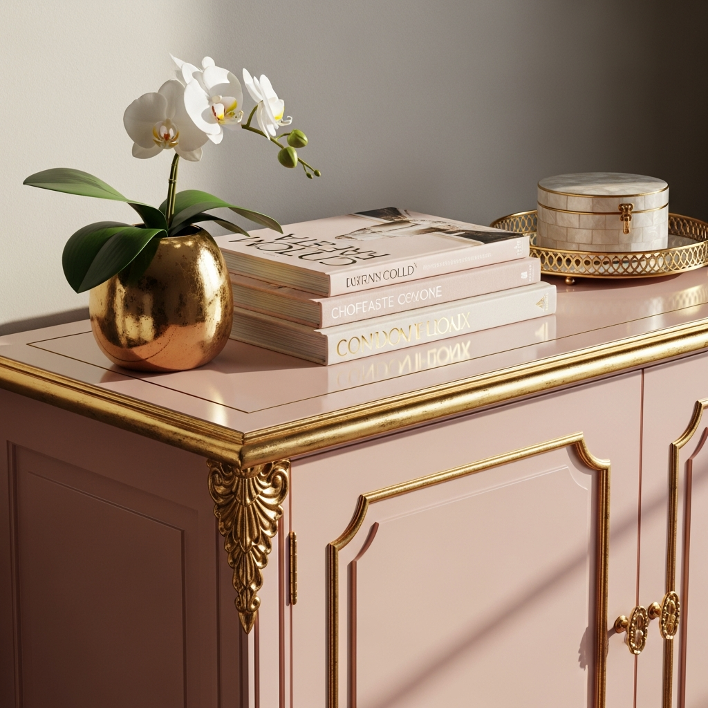 Elevate any piece of furniture with metallic gold accents. Paint the main body in a subtle color like blush pink, soft gray, or even black, then use gold paint to highlight carved details, edges, or hardware. This technique instantly adds a touch of glamour.