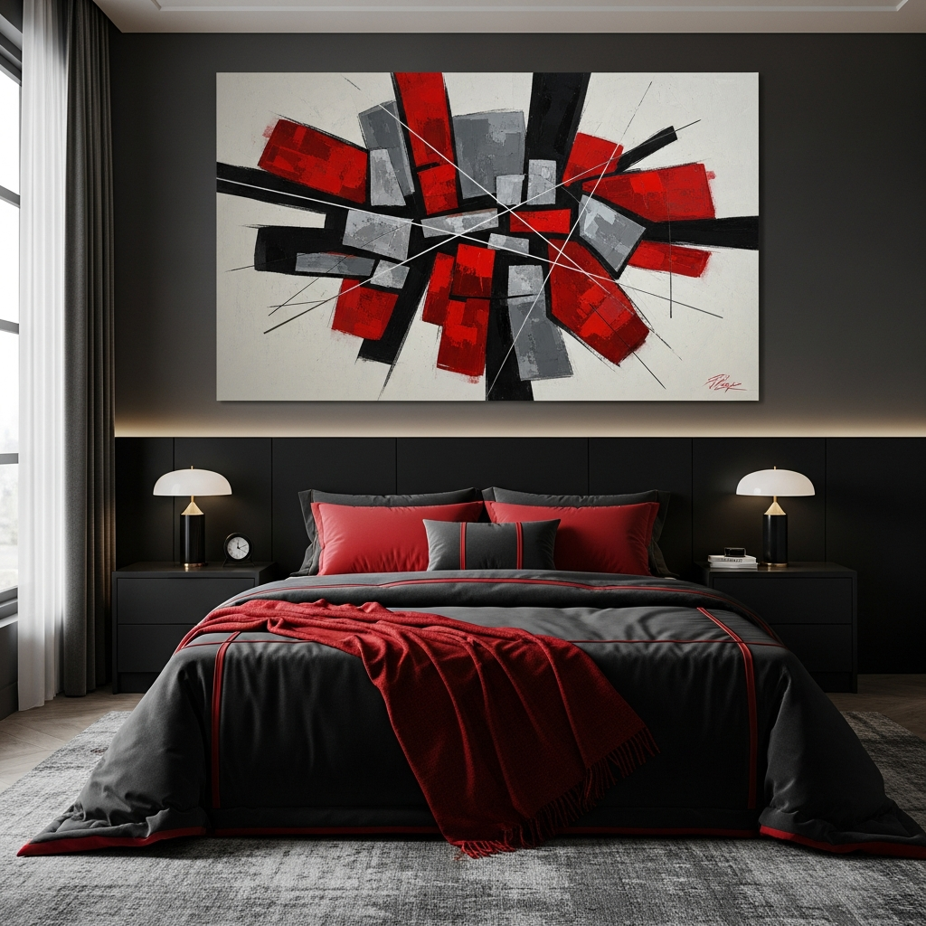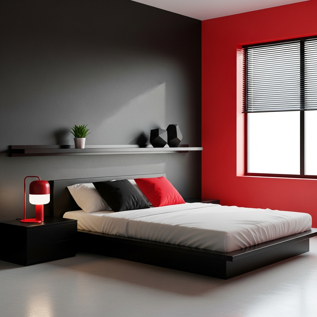 This design is all about clean lines, high energy, and contemporary sophistication. Matte black forms the primary backdrop, allowing vibrant cherry red accents to truly pop. Think a feature wall in red, or a striking red bed frame. Cool gray and silver accents provide balance.