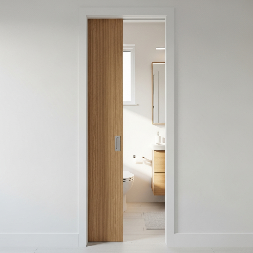 If your layout allows, a pocket door slides into the wall, eliminating the swing space a traditional door requires. This clever solution frees up valuable square footage, allowing for more flexible furniture placement or additional storage.