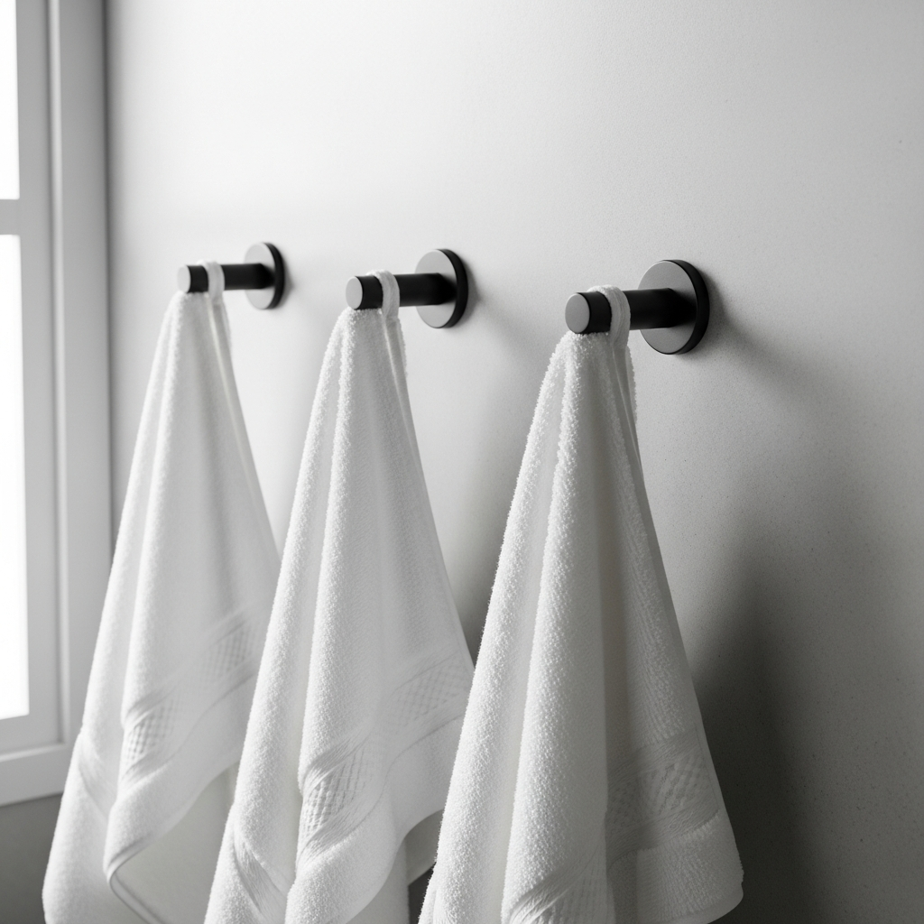 Towel hooks take up significantly less wall space than traditional towel bars and are incredibly functional. Choose sleek, modern hooks in a finish that complements your fixtures for an elevated touch.
