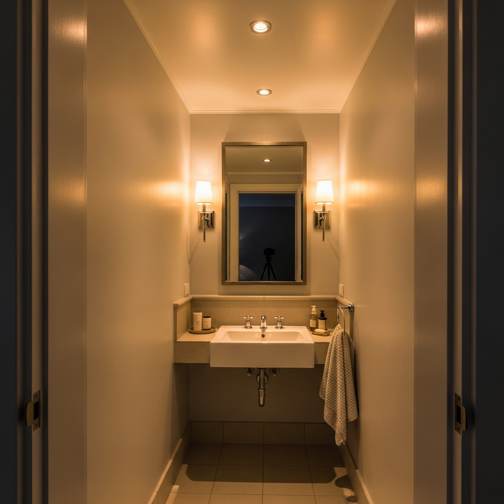 Layer your lighting with a mix of recessed ceiling lights and stylish sconces. Recessed lights save space, while sconces provide flattering task lighting and add a touch of sophistication. A dimmer switch can control the mood, creating a relaxing ambiance.