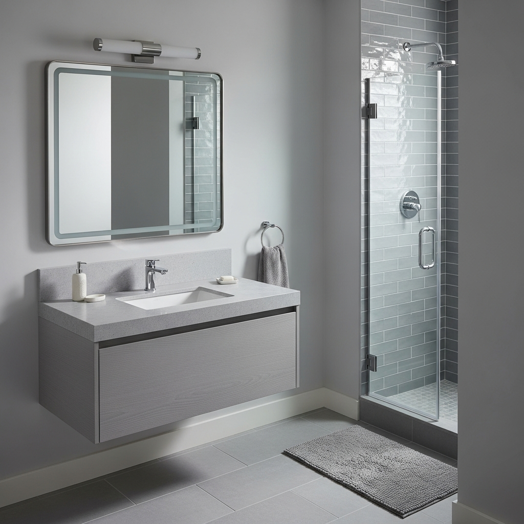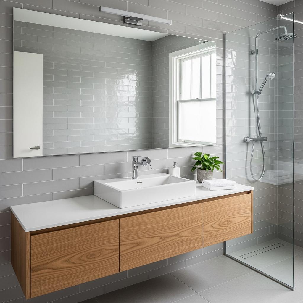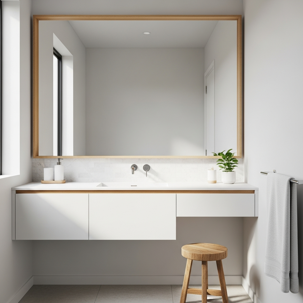 While a large rectangular mirror expands space, a round mirror can soften harsh angles and add a touch of modern elegance. It creates a beautiful focal point, especially when paired with a simple vanity, and feels less imposing than a square alternative.