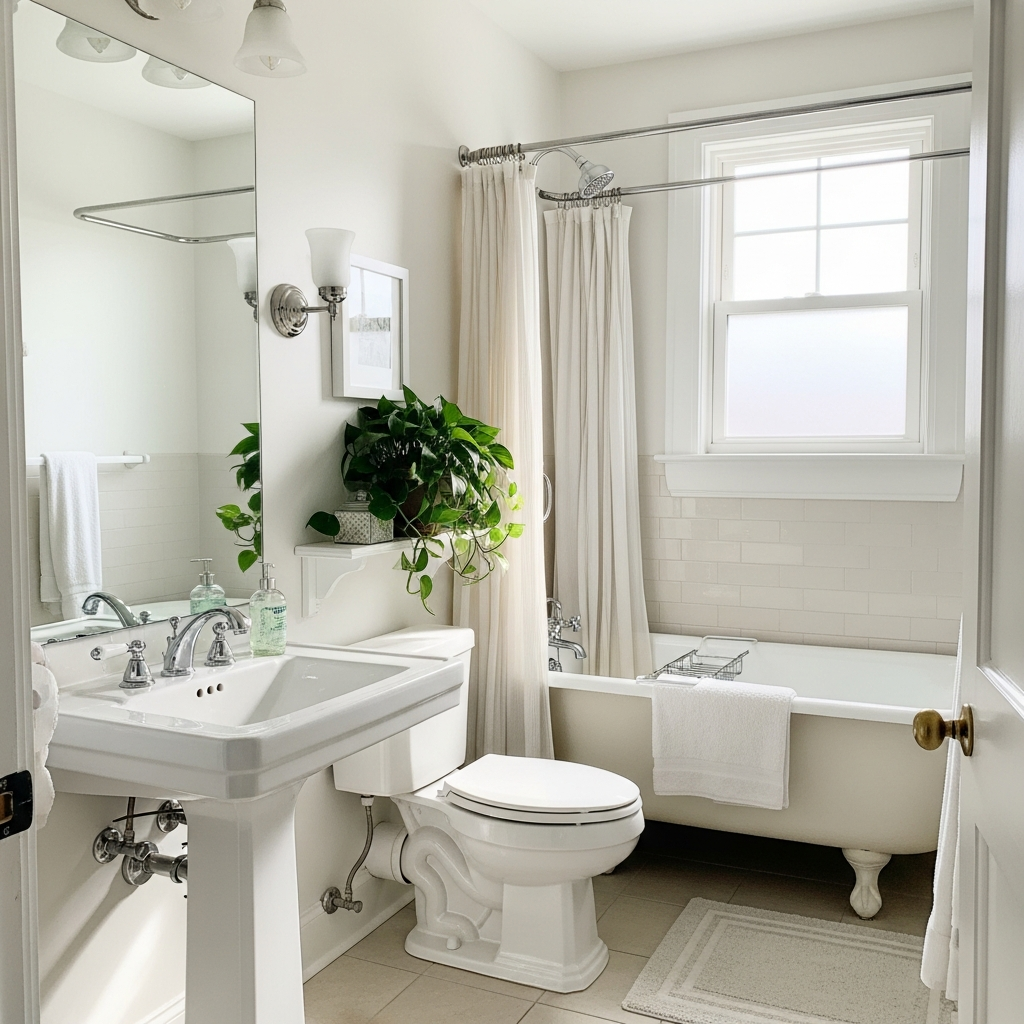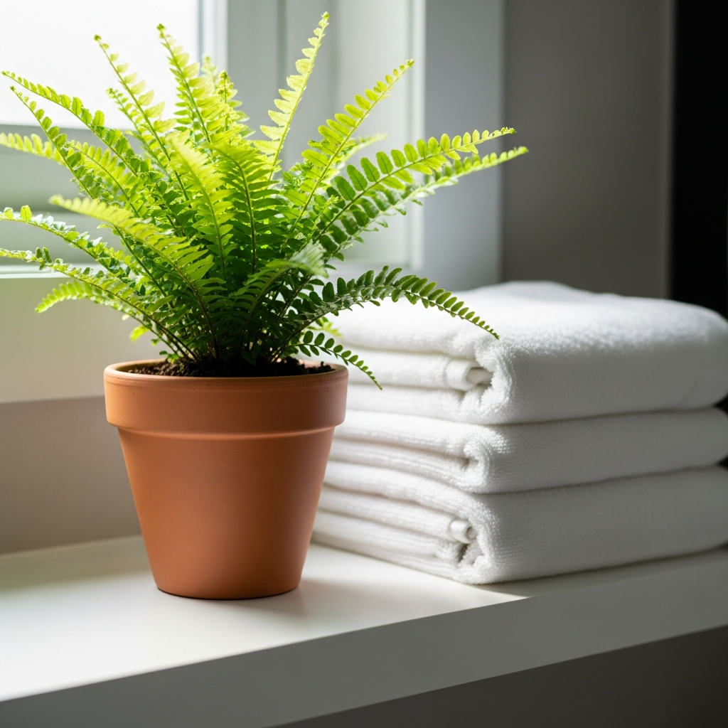 Even in a tiny bathroom, a touch of greenery brings life and freshness. Opt for small, humidity-loving plants like succulents, ferns, or air plants. Place them on a shelf, vanity corner, or even hanging from the ceiling to purify the air and add organic beauty.
