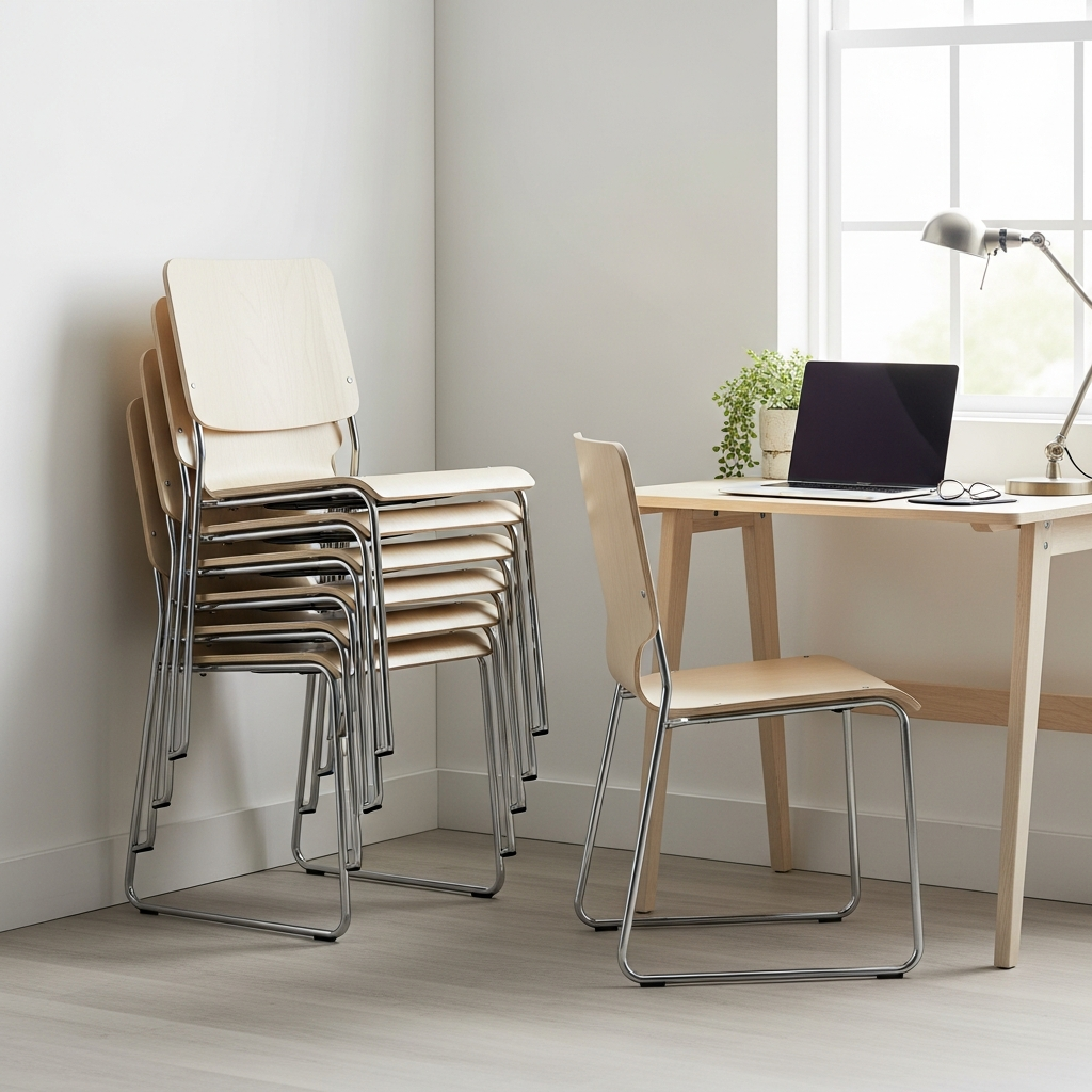 When guests arrive, stackable chairs or stools are invaluable. They can be stored in a closet or corner and brought out only when extra seating is needed, preventing your space from feeling overcrowded.