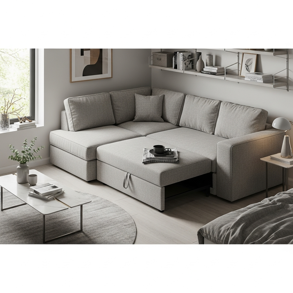 A modular sofa allows you to customize its configuration to fit your space perfectly. You can often rearrange the pieces to create different seating arrangements or even a makeshift bed when needed.