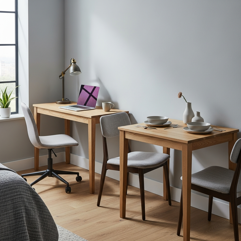 Dedicated dining areas are often a luxury in studios. A folding table that tucks away or a table that mounts directly to the wall and folds down offers dining flexibility without permanent space commitment.