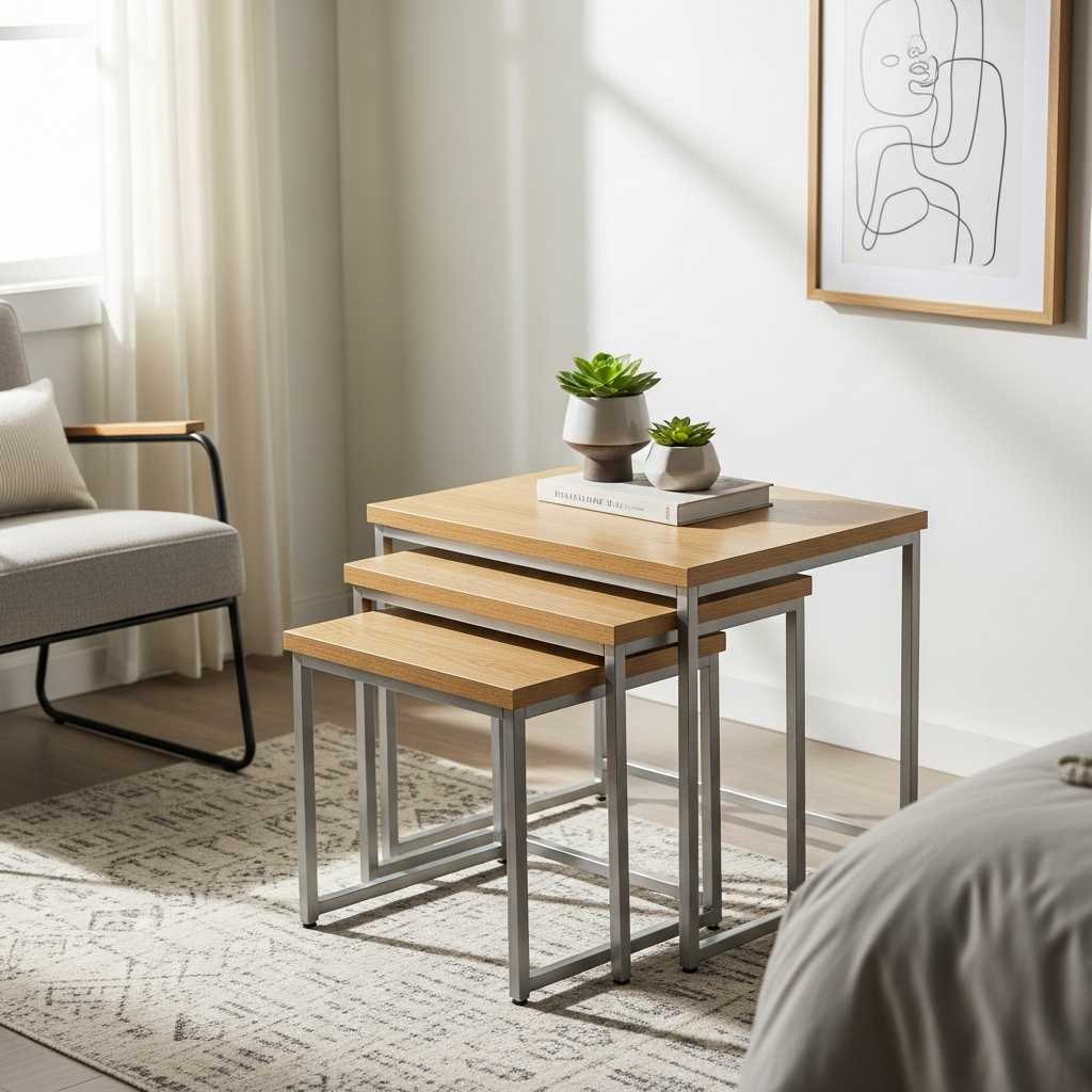 Nesting tables are a brilliant design solution for flexibility. A set of two or three tables can be pulled out when needed for guests or extra surfaces and then neatly tucked away into a single unit to save space.