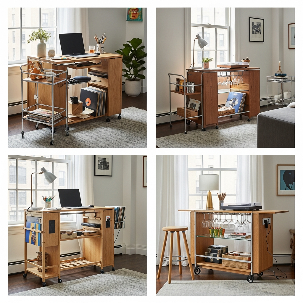 Envision a vintage-inspired bar cart with brass accents and glass shelves. It might hold your morning coffee essentials by day, then neatly transition to a display for your favorite spirits in the evening. Its mobility adds both charm and practical versatility.