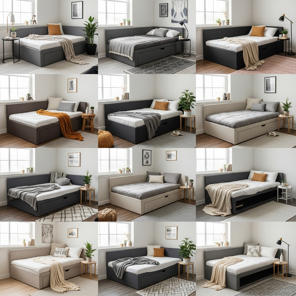 A sofa bed offers a dual purpose, serving as comfortable seating during the day and a cozy sleeping spot at night. A daybed, often a bit more elegant, functions similarly but can also be dressed up with throw pillows to mimic a luxurious chaise lounge.