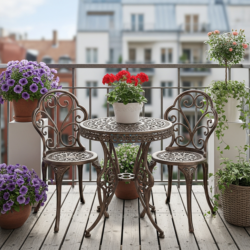 For smaller balconies or intimate garden nooks, a three-piece bistro set is an efficient choice. Metal sets with intricate scrollwork or sleek minimalist designs offer a charming spot for morning coffee without overwhelming the space. Folding versions provide the added benefit of easy storage during the off-season.