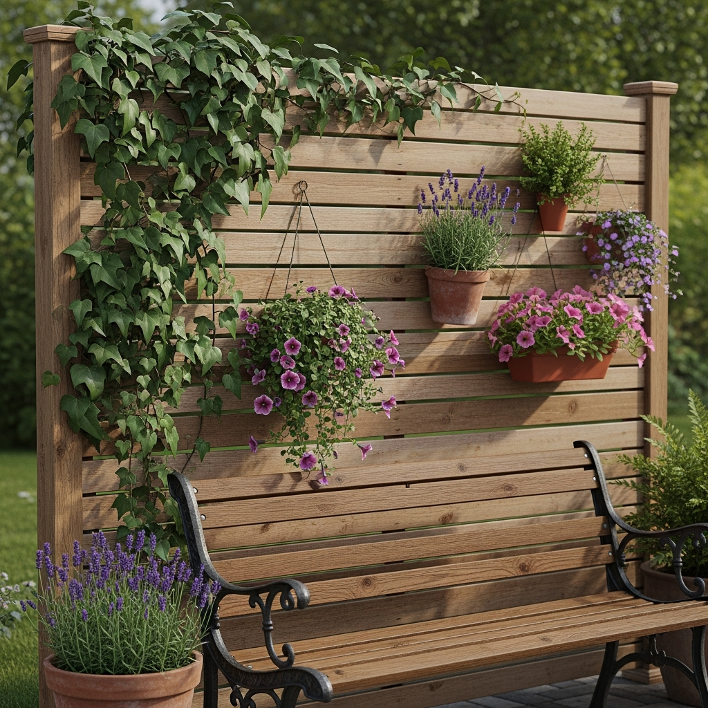 Privacy is essential for a relaxing outdoor environment. Using wooden or metal screens adorned with climbing plants or built-in planters serves a dual purpose: providing seclusion and adding greenery. These screens act as living walls that frame your furniture and enhance the garden feel.