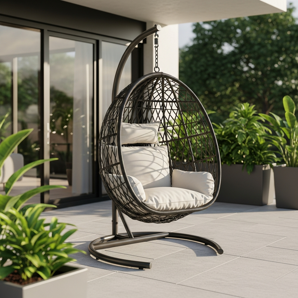 Hanging egg chairs serve as both a comfortable seating option and a striking visual statement. Suspended from a sturdy steel frame or a reinforced porch beam, these chairs provide a cocoon-like experience that is perfect for relaxation. They add a contemporary architectural element to any patio layout.