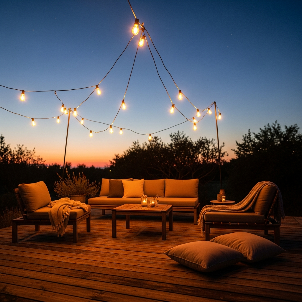 While not furniture in the traditional sense, lighting is a critical decor element that defines the space. Stringing Edison-style bulbs across a patio or wrapping them around pergolas creates a professional, bistro-like atmosphere. It highlights your furniture choices and ensures the space is usable after dark.