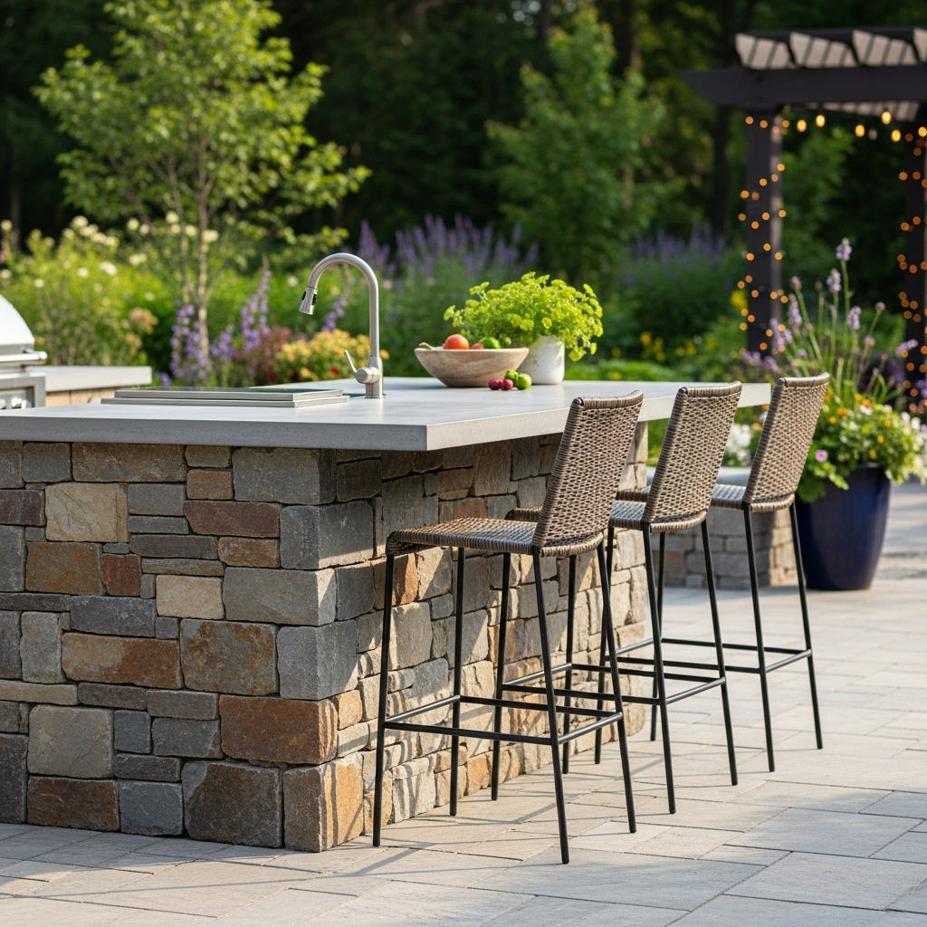 If your patio includes a built-in kitchen or a high-top counter, stylish bar stools are a must. Opt for stools with footrests and back support for ergonomic comfort. Materials like resin or treated metal are ideal for standing up to the humidity and heat of the summer season.